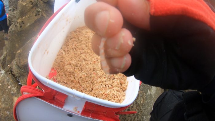 後、ハリス落とした後にツケ餌にも一工夫。