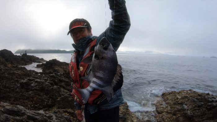 5時半くらいから開始。満潮までの3時間がゴールデンタイムだから、3時間はフカセしないで石鯛に集中してと大津くんから言われました(笑)