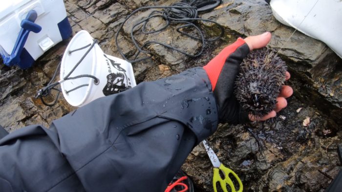 餌のガンガゼは自分で。知らなくて素手で掴んでたら、大津君から若干毒あるから挟むやつ使ってと言われました汗。確かに指先に少し違和感が💧
