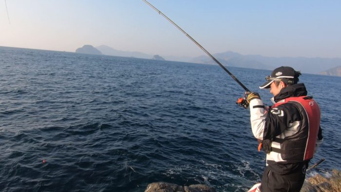 潮は右から左沖に流れてます。2投目で来ましたが、うまくアタリが取れてなかった感じです。