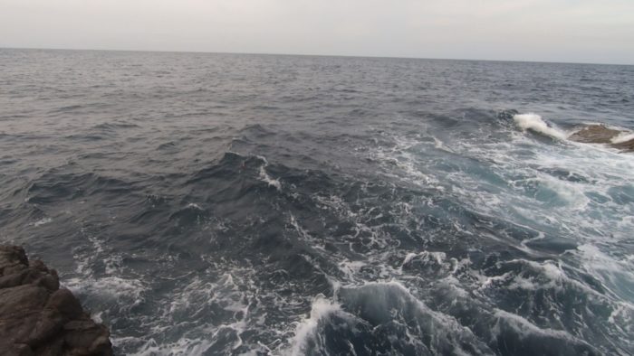ある程度潮が引いたので南側の低い釣り座に移動。ここは風を背に受ける感じになるので釣りやすい。