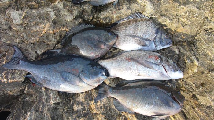 最初、浅ダナでオナガがヒット。それからまさかのチヌチヌ!ここチヌも釣れるのか!