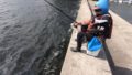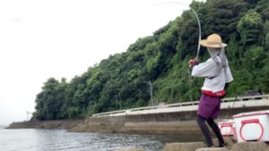 先端から沖に流れる潮に乗せます。ここで2時間くらい粘りましたがチャリコが1匹(´ω`)